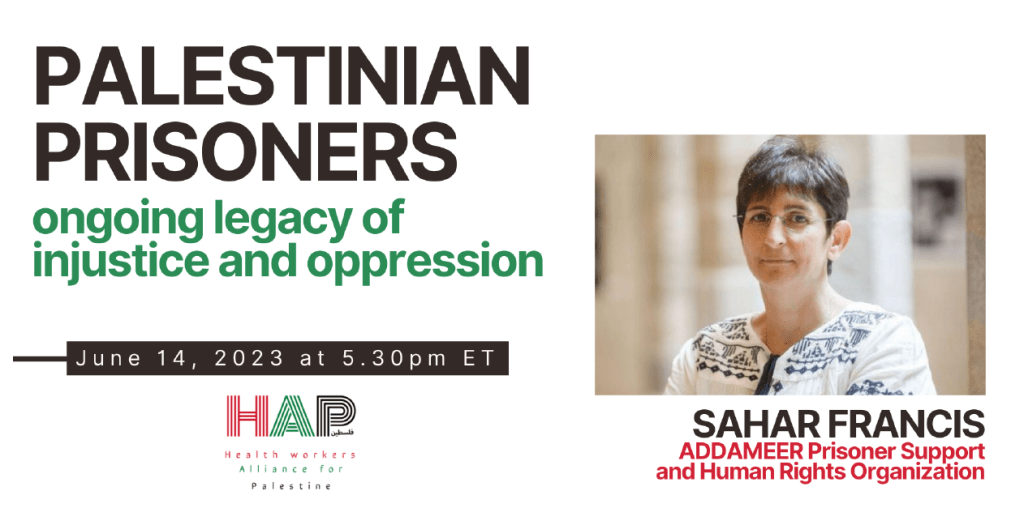 Ms. Sahar Francis, from ADDAMEER Prisoner Support and Human Rights Association, will give an overview on current conditions of prisoners with a focus on prisoner health and the consequences of policies of willful neglect.