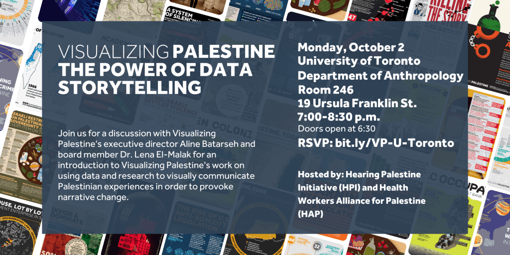 This event is hosted by the Hearing Palestine Initiative and Health Workers Alliance for Palestine at the University of Toronto.